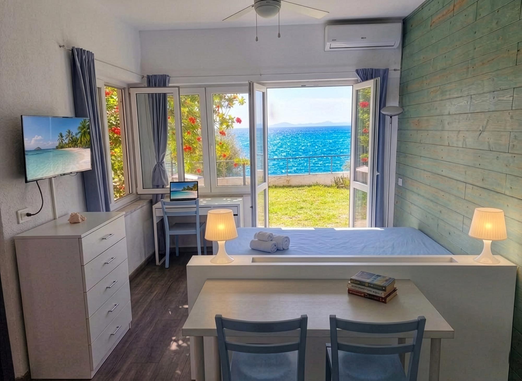 with a sea view, two tables suitable for working from home, a separate